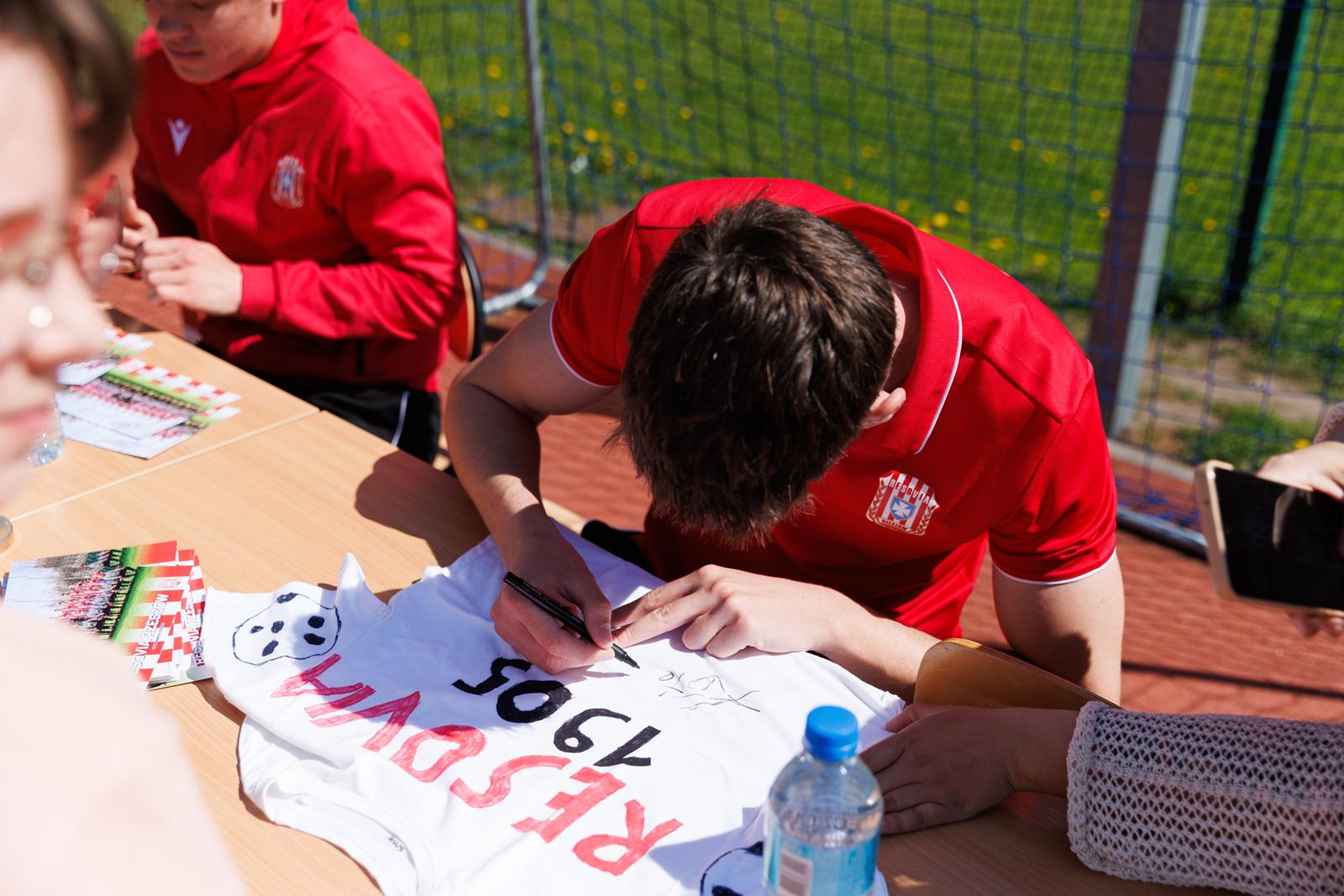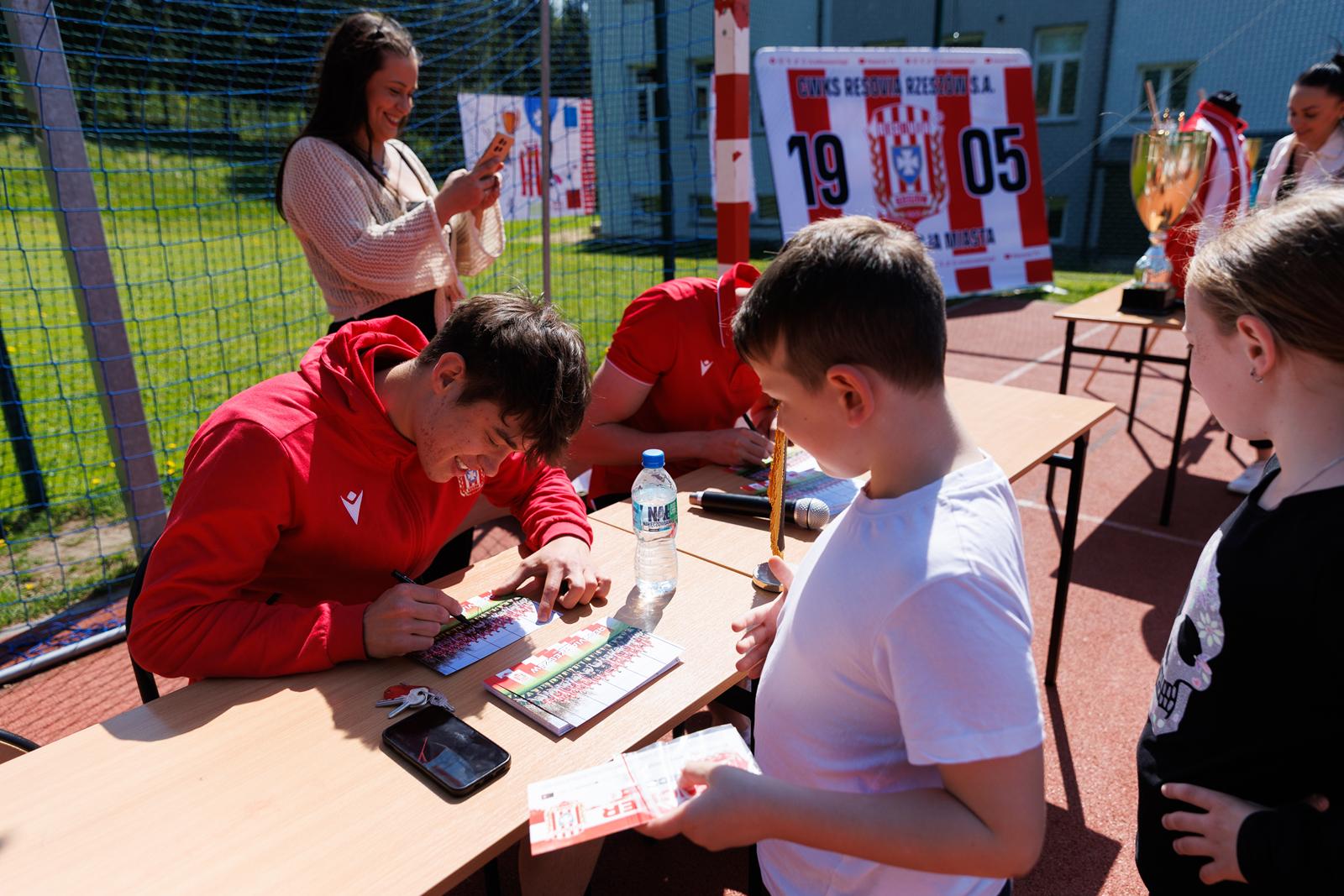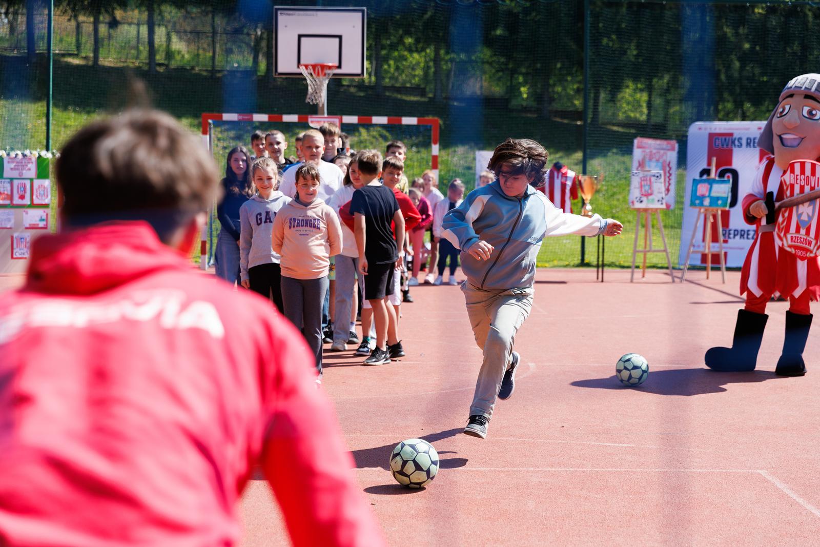Wizyta podzielona była na dwie jednostki lekcyjne dla młodszych i starszych uczniów. Standardowo lekcja składała się z dwóch panelów czyli teoretycznego oraz praktycznego. W pierwszym z nich uczniowie mieli okazję poznać historię Resovii oraz zadać nurtujące ich pytania piłkarzom. Z kolei w drugim, po rozgrzewce przeprowadzonej przez zawodników odbyły się konkurencje piłkarskie.