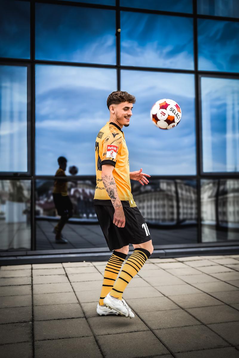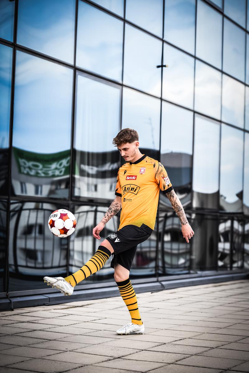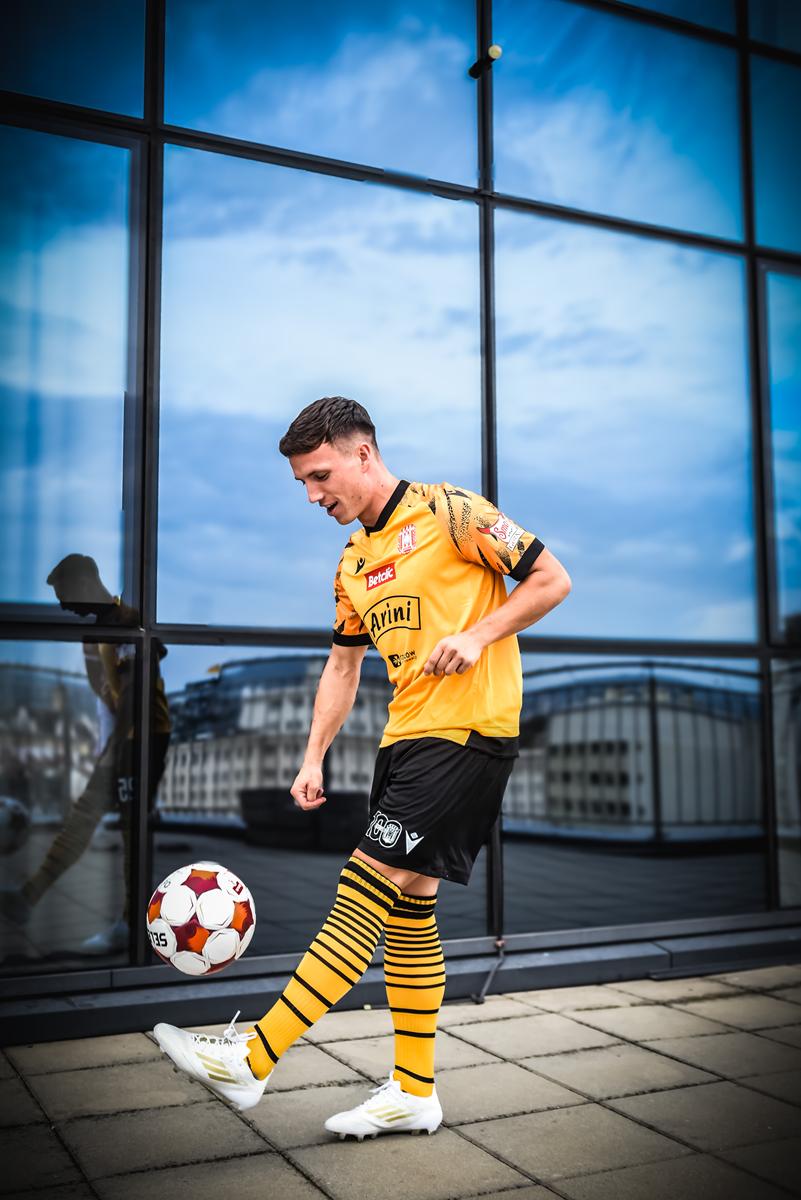 Zobaczcie nowe szaty Reprezentacji Miasta na sezon 2025/2026 od firmy Macron. Klasyczny pasiak, żółto-czarna wyjazdówka oraz neonowe bramkarskie. Zapraszamy do zapoznania się ze zdjęciami autorstwa Martlens.jpg.