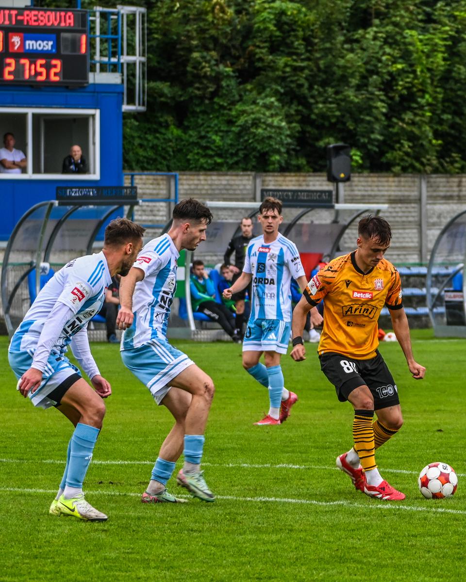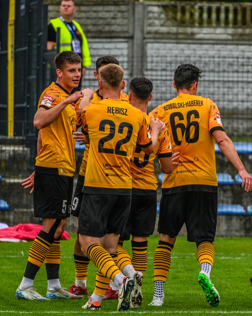 Mecz zakończył się wynikiem 2:1 dla Resovii po bramkach Radosława Bąka i Dominika Banacha.